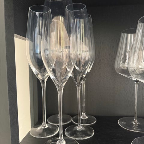 Glas, Champagneglas, Holmegaard Cabernet, Sjældne og udgåede Holmegaard Cabernet champagne glas. De er 29 cm høje og derfor noget højere end dem man kan købe idag (se billede nr. 2)
