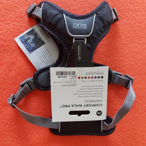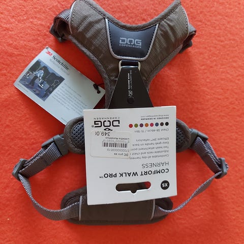 Prisvindende sele der beskytter ryg og nakke. Masser af justeringsmuligheder. Str S, brystmål 44-56 cm hals 28-40 cm.