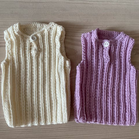 Vest, Uldvest, Hjemmestrikket, str. 74, Klar til salg. Hjemmestrikket vest str 9 - 12 mdr. farve pudderrosa nr 54, findes også i rød nr 16, se den i min shop. Strikket i et røg- og dyrefrit hjem og i Baby Merino som ikke kradser og er meget blødt, Drops ( garnfirmaet anbefaler maskinvask se billede nr 6 ). Billede nr 5 med ca mål, hvis der er noget, du er i tvivl om, er du velkommen til at kontakte mig.