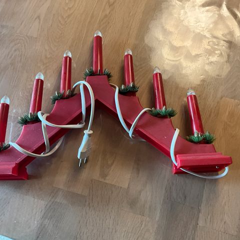 Svensk elektrisk lys lampe med ledning, se fotos. Lysestage af træ mm.