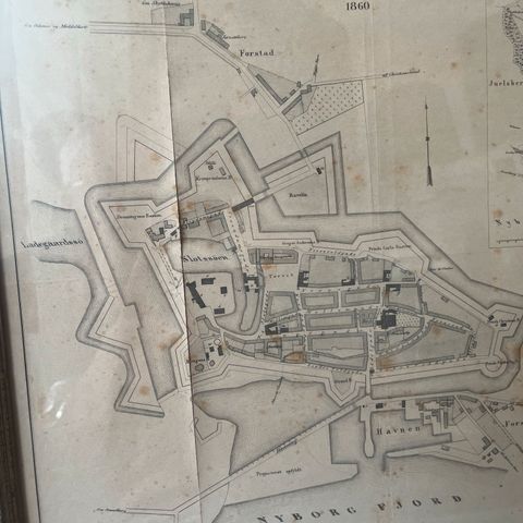Kort over Nyborg fæstning år 1852 H= 21,5 cm B= 33,5 cm