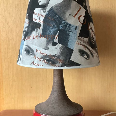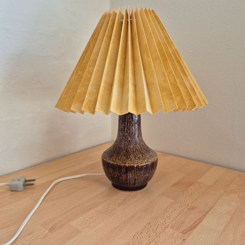 Cremefarvet keramiklampe med stofskærm. Er i rigtig god stand.