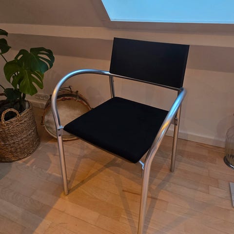 Har brugsspor, ridser i akrylet og brugsspor på armlæn. har pletter på stoffet, som ikke er forsøgt fjernet.