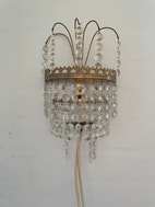 Gustaviansk. Messing, krystal prismer, brugt og bærer præg af tiden, den nederste række prismer mangler men de kan som fotos viser undlades. 2 stk og samlet pris