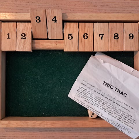 Tag Tric Trac med hjem og nyd timevis af underholdning, hvor du og din modstander kan dyste om at være den første til at lukke alle klapperne og vinde spillet.