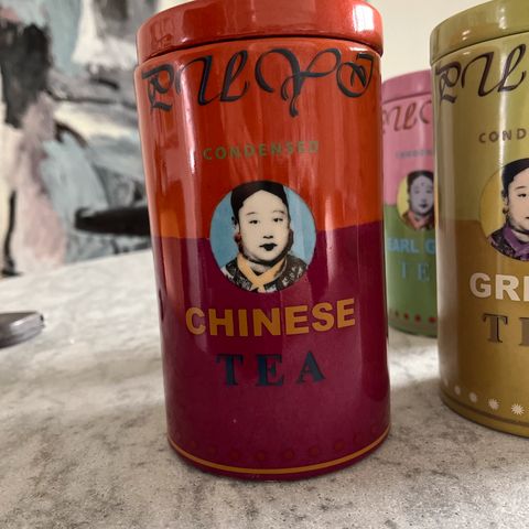 Sjælden Porcelæns krukke med låg fra Fabienne Jouvin Paris med teksten Green Tea.