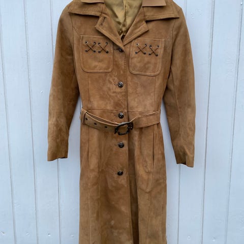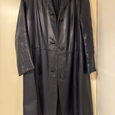 Flot mørkebrun skind frakke fra Johs skind beklædning. Brugt men med god patina. Kan bruges i både regn og blæst. Har sidelommer og kappe.