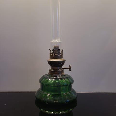 Olielampe i glas, Rund til bordet, Vintage,