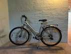 Fin cykel der køre som den skal. 21 udvendige gear. Hånd bremse til foran og bag til. Ingen benbremse og friløb. Godkendt lås med nøgle. Stell 55 cm.