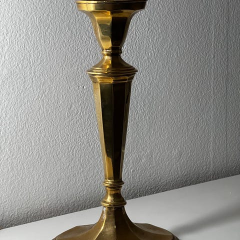 2. Høj slank messingstage. Højde 20 cm og diameter bund 7,5 cm.