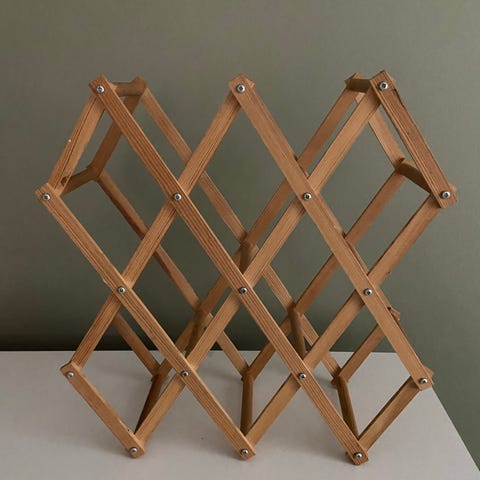 søgeord: vin wine hylde hylder vinhylde vinholder flaskeholder flaskehylde holder opbevaring flaske bottle harmonika gitter foldes fold extendable retro vintage otte rum lyst foldbar stativ vinstativ vinreol trævinreol reol vinflaske vinflaskeholder alkohol spiritus wine rack accordian sammenfoldelig vinstand stander folding