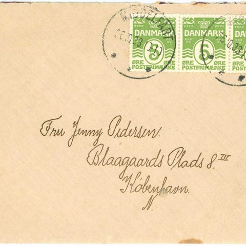 Nydeligt brev i pæn stand med Afa nr. 55, Frederik VIII 10 øre rød, stemplet i Beldringe 29.7.1912. Sendt til Snedinge pr. Sønder Bjerre.