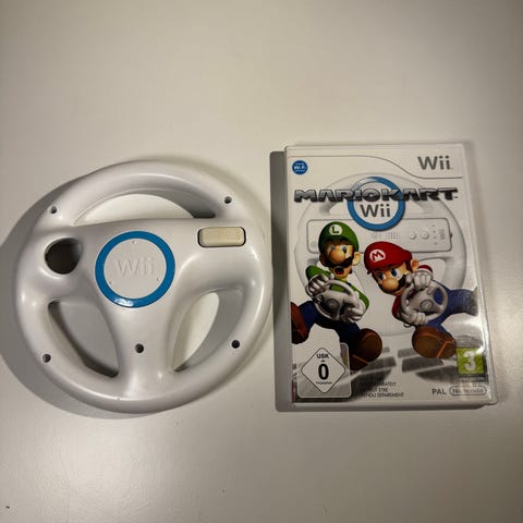 2 stk originale Nintendo Wii Mario Kart rat i hvid, incl 1 Nunchuck.