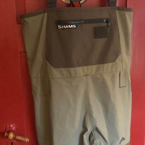 Sælger denne ubrugte wadejakke fra Simms. Størrelsen er xl, men den passer til folk som normalt bruger large. Den kan ses og prøves i København eller tages med til Lille skensved ved interesse.