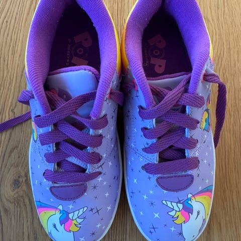 Nye rullesko, min datter brugte dem to gange. De har forskellige lygter og kan også bruges uden hjul. Størrelser spænder fra 25 til 27.