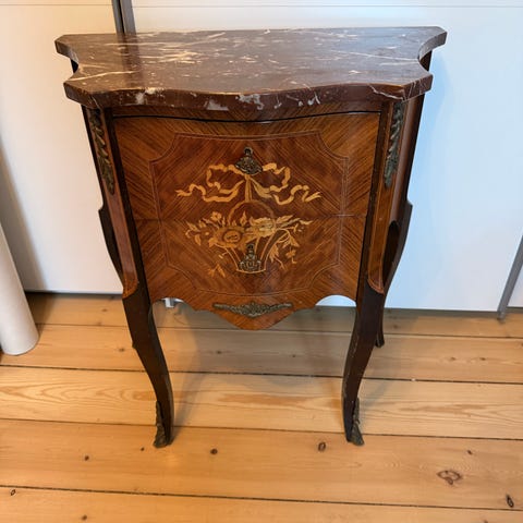 Kommoden er formentlig fra starten af 1900-tallet og er smukt og solidt håndværk. Mormor-toppen er indlagt og kan fjernes. Tre skuffer i god størrelse.