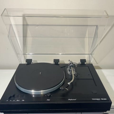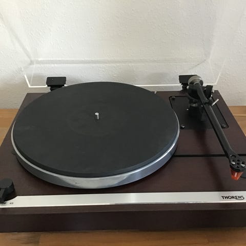 Den er blevet smurt i centerlejet, hastighedsjusteret, spiller som den skal og lyder godt.