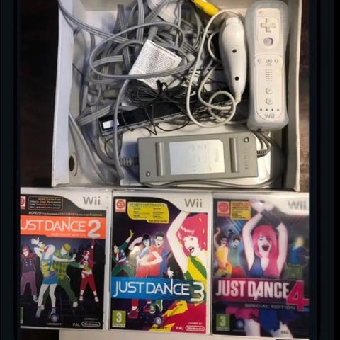 Samt 2stk Just Dance spil med cirka 35-40 sang per disc, fantastisk underholdning