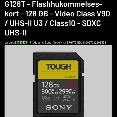 Sony TOUGH SF-G128T 128GB SDXC UHS-II