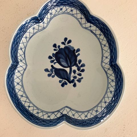 Uden skår. Kagefad formet som blomst. Måler 16 cm i diameter.