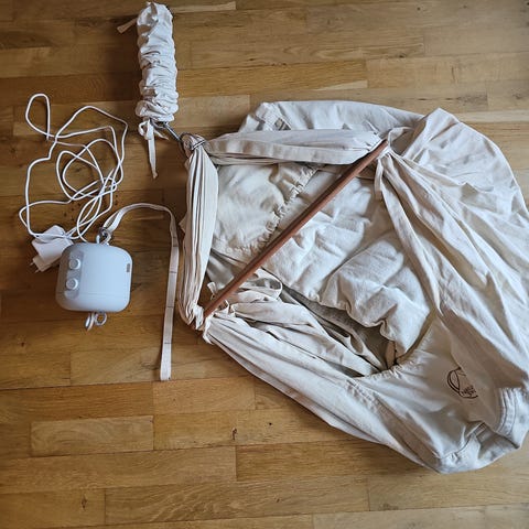 Sælger denne slyngevugge fra Membantu med motor - den står med premium stativ.