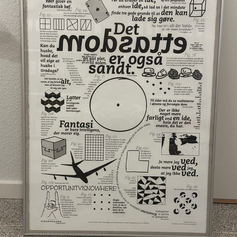 Plakat, Plakat: MENTAL JOGGING og INTELLEKTUELLE POPCORN og VISDOMSORD i inderskifteramme af metal med passepartout og med pleksiglas og yderramme af mørkt træ 105x75cm absolut fast pris kan ikke forhandles kr950. Shr