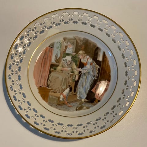 Platte, Bing & Grøndahl, Stemplet bagpå: B&G 4503/616 Udsnit af Carl Larssons "køkkenet" malt 1896 Motiv nr. 3.