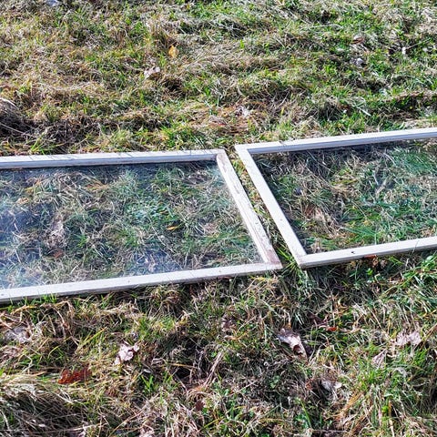 I den ene rude er der en lille revne ved det ene hjørne.