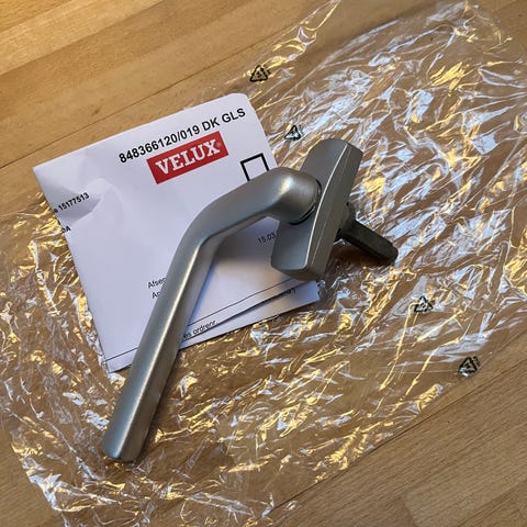 Håndtaget passer til Velux vippe vinduer, der har en bredde på 78 cm.