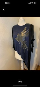 Sort og blå med gråt tryk asymmetrisk bluse top / blusekjole / tunika agtig med skrå detaljer fra David Andersen i str S. (Ikke lille i str - passes af 36-38)