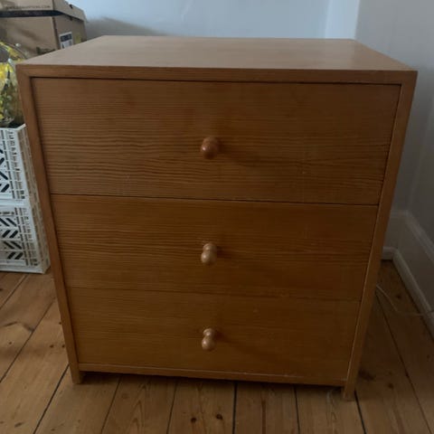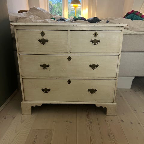 Brugt kommode med brugstegn som billederne viser. Den er i træ der er farvet mørkt, men husker ikke hvilket træ.