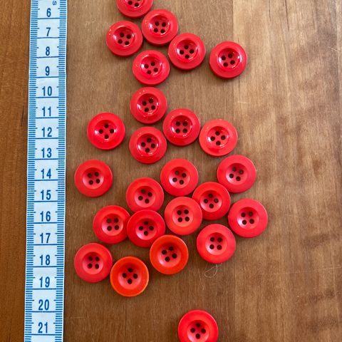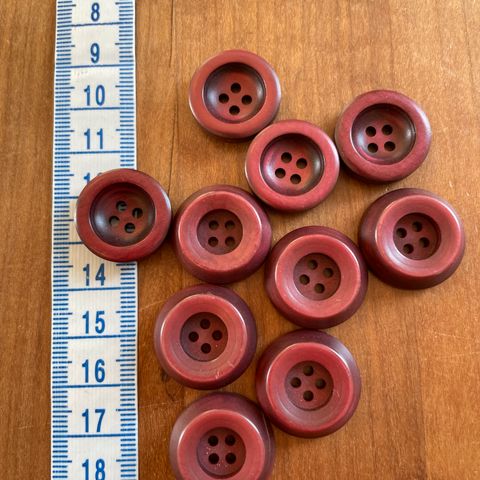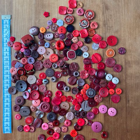 8 forskellige billeder med plastikknapper i røde bordeaux pink og lyserøde nuancer