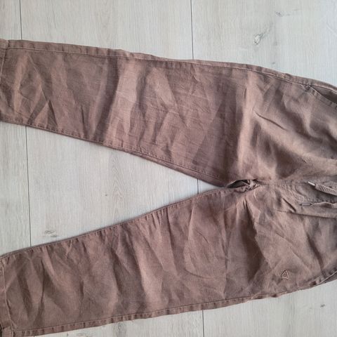 Brune hørbukser fra PompdeLux. Kan justeres i livet og har også snøre i livet. 2 skrålommer og derudover 2 baglommer, som ikke er åbnet op, men kan gøres. Formen passer desværre ikke min søn.