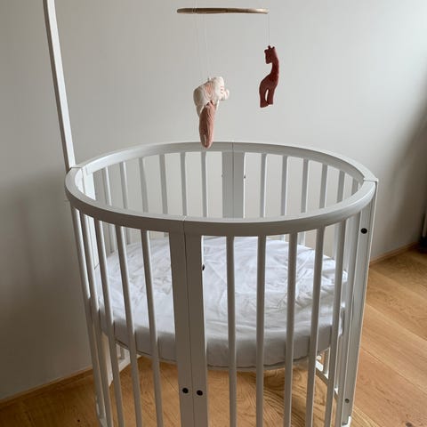 Sleepi stokke kan gøres mindre, madras følger med. Ingen hjul på