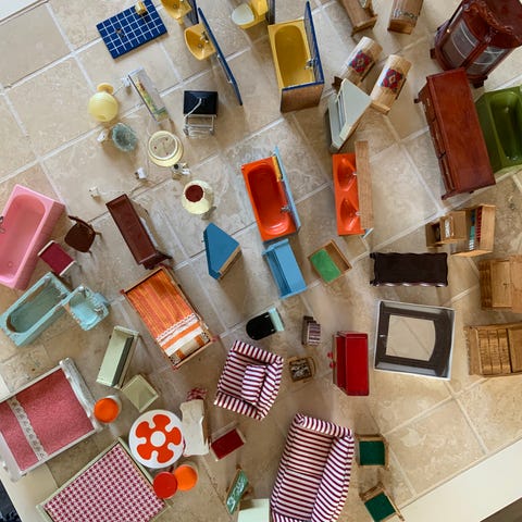 21 dele dukkehusmøbler i træ. Pæn stand.