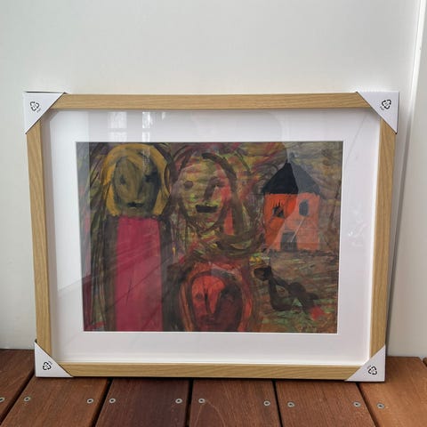 Akrylmaleri, William Skotte Olsen , motiv: Portrætter/Figurer, stil: Abstrakt, b: 104 h: 74, Målene er inklusiv rammen
