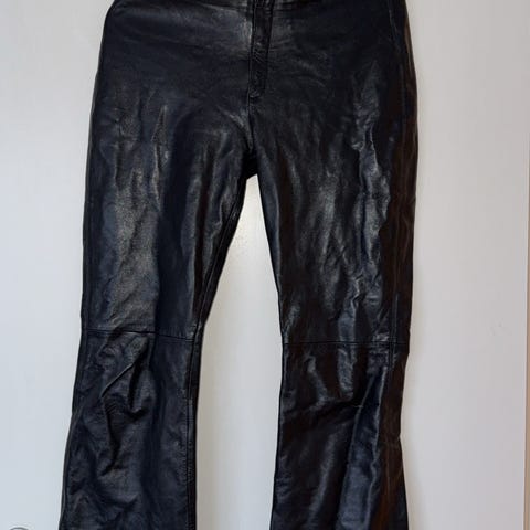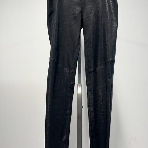 Super cool løstsiddende track pant lavet i det blødeste lækre lammeskind. Buksen er med lårlommer og lynlåslomme nederst på benet, og med elastik i taljen.