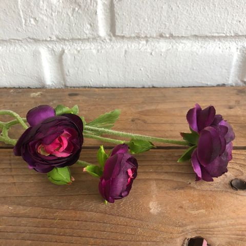 Ranunkel i lyserød/ hvid, 1 gren med 3 blomster og knopper, 50 cm lang.
