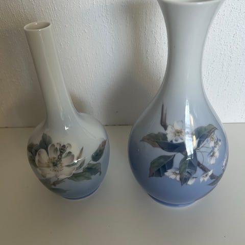 Royal Copenhagen vaser. Nr 2631 184, ca 28 cm høj = 100 kr. Nr 2660 1099, ca 28 cm høj = 200 kr.