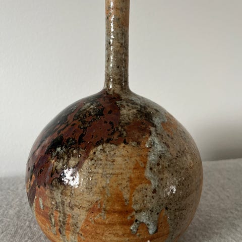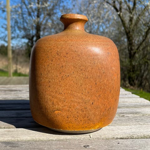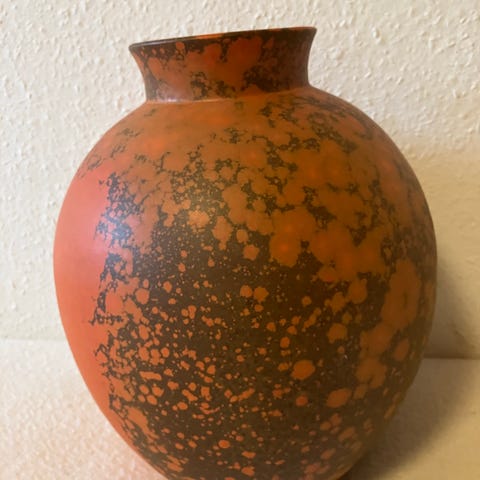 Antik bordlampe fra Herman A. Kæhlers værksted i Næstved. Lampen er nok fra 1930erne og med orange uranglasur.