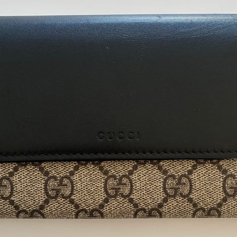 Gucci compact bifold wallet . GG stof udenpå , brun læder inden i . Som ny .1250 kr