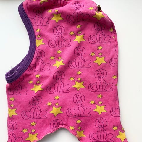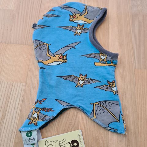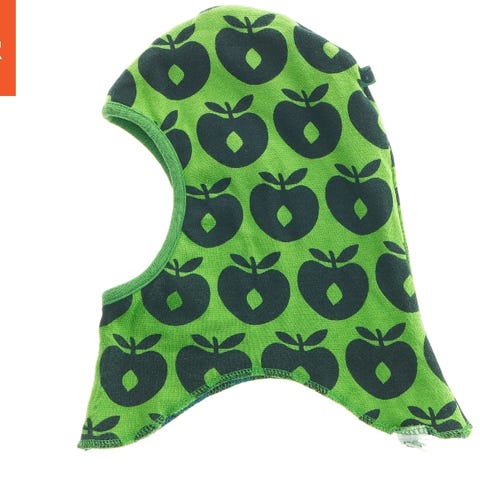 Hue, Elefanthue, Småfolk, str. 122, Flot stand. Tyk velour elefanthue lilla med æbler på.