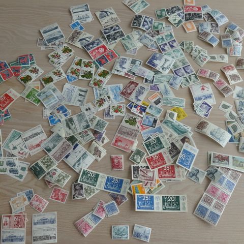 Lille samling i indstiksbog med de fleste mærker fra perioden, alle postfriske. Ialt 530 mærker, hvis alt tælles som enkeltmærker. Nogle af disse sidder i 30 stk miniark og hæftesammentryk. Alle mærker vist. Afa værdi kr 6408. Kan så vidt jeg ved stadig benyttes til frankering i Sverige.