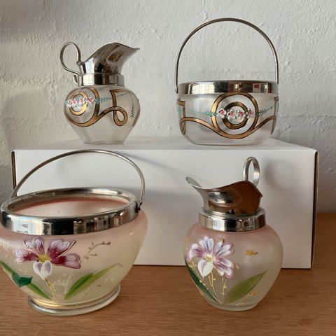 Salt/Peber/Sukker(Sennep) Sæt i Glas Art Deko (1930-1950)