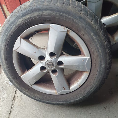 4 stk Dezent fælge 6 1/2 J x 16H2, ET 35. Dæk: 215/65R16 med TPMS ventiler. Har siddet på Nissan Qashqai J11. Dækkene er slidte!