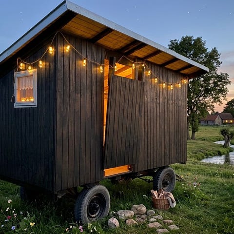 Har en masse træ, plader og stål tag som har været brugt til store halloween skurer.