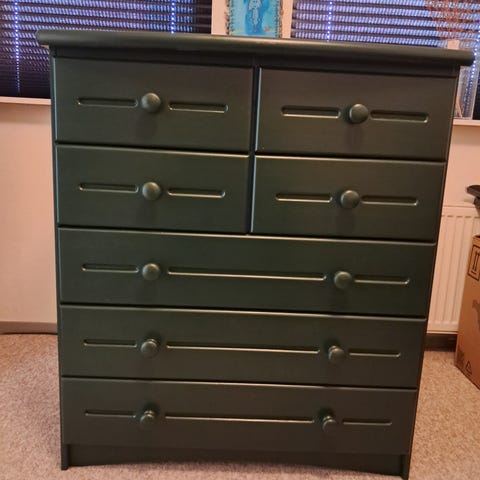 Kommode i massivt fyrretræ i smuk stand med to store skuffer