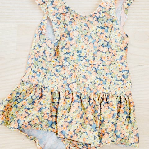 Super flot badedragt fra Wheat sælges . Den er brugt meget lidt og fremstår som ny . Den er i str 92 . Den er med det sødeste blomsterprint . Den sælges for 100kr