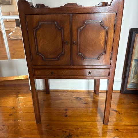 Skab, malet, 150 år gl., Smukt lille kinesisk skab fra det 19. årh. med 3 skuffer. H 46,5 cm, B 28,5 cm, D 22 cm. Ingen skader. Købt hos Green Square. Giv et bud.