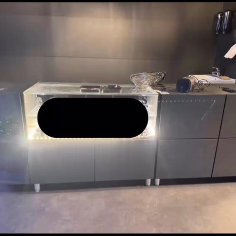 Disken er brugt i to dage på en udstilling. Den er uden en ridse! Produceret hos en professionel møbelsnedker - oprindelig pris 25.000 kr.